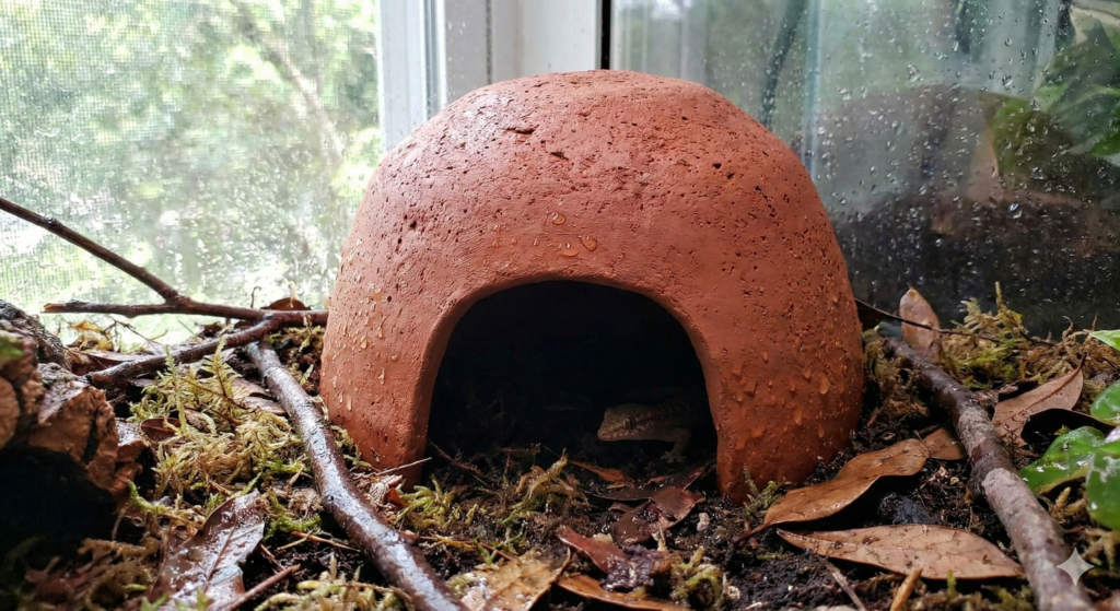 多くのウェットシェルターは、入口が一つしかない洞窟や「かまくら」のような形をしています。これは爬虫類が落ち着くには良い形状ですが、空気の入れ替え(換気)がしにくい構造でもあります。