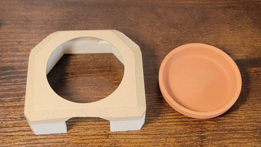 ではどうやってシェルター内の湿度を保つのかというと、シェルターと加湿機能を簡単に取り外せるようになっています。素焼き皿に水を入れることでシェルターや水槽の湿度を適度に保つことができます。